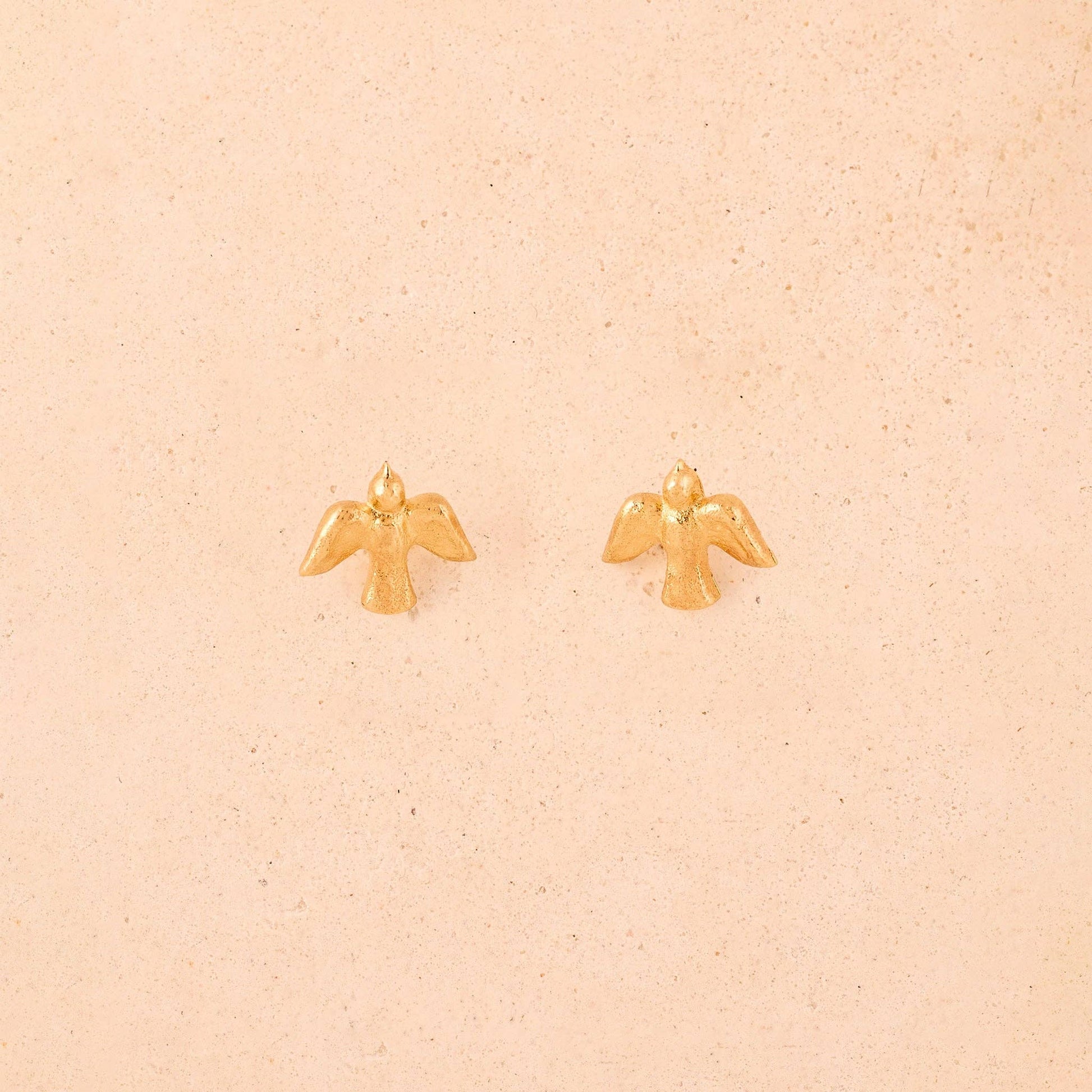 Petites boucles d'oreilles en forme d'oiseau volant avec des ailes déployées, comme si elles planaient dans le ciel.