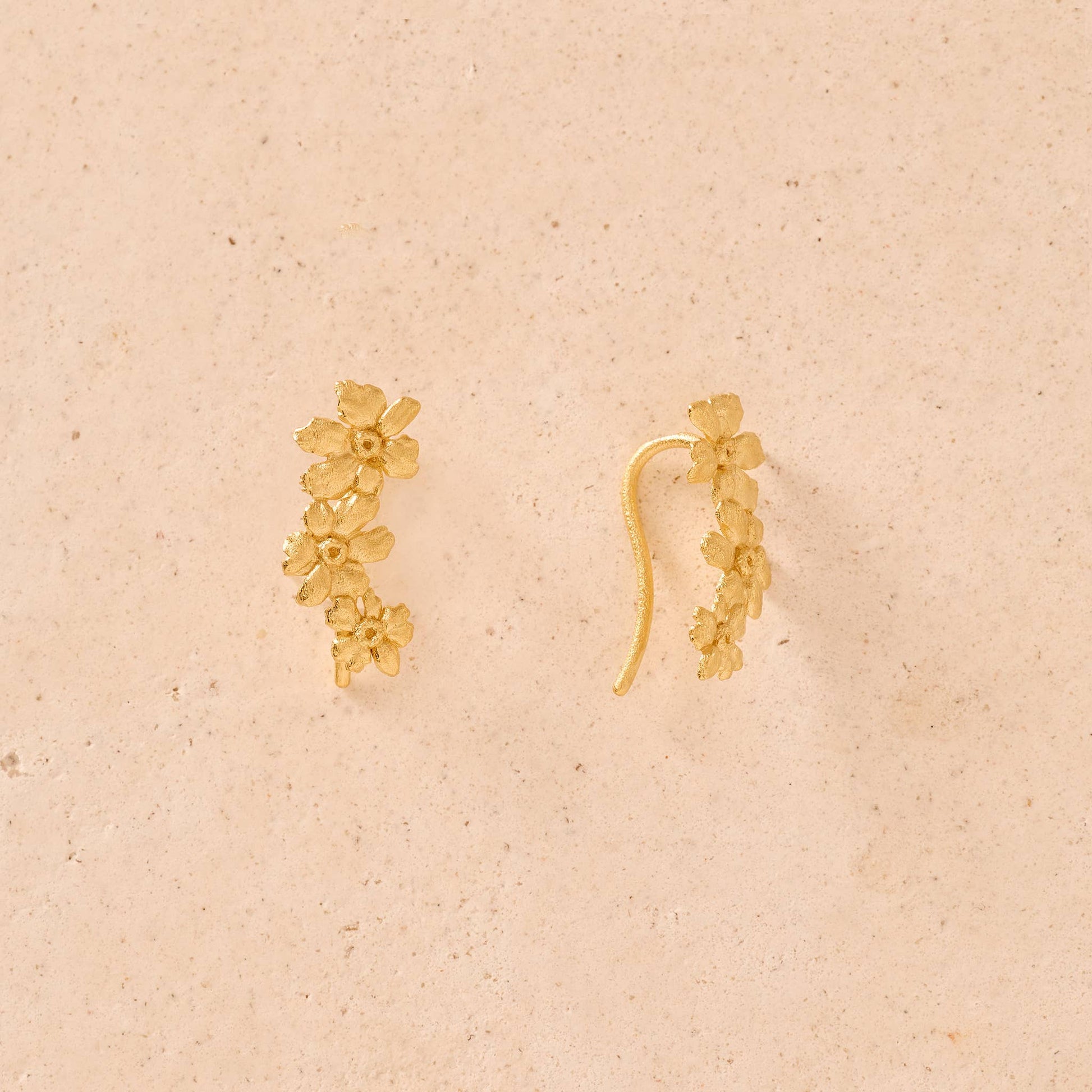 Notre grimpeur d'oreilles Rosaria est orné de trois petites fleurs délicates. Minimalistes mais percutants, ils vous feront sentir aussi mignons qu'un bouton.